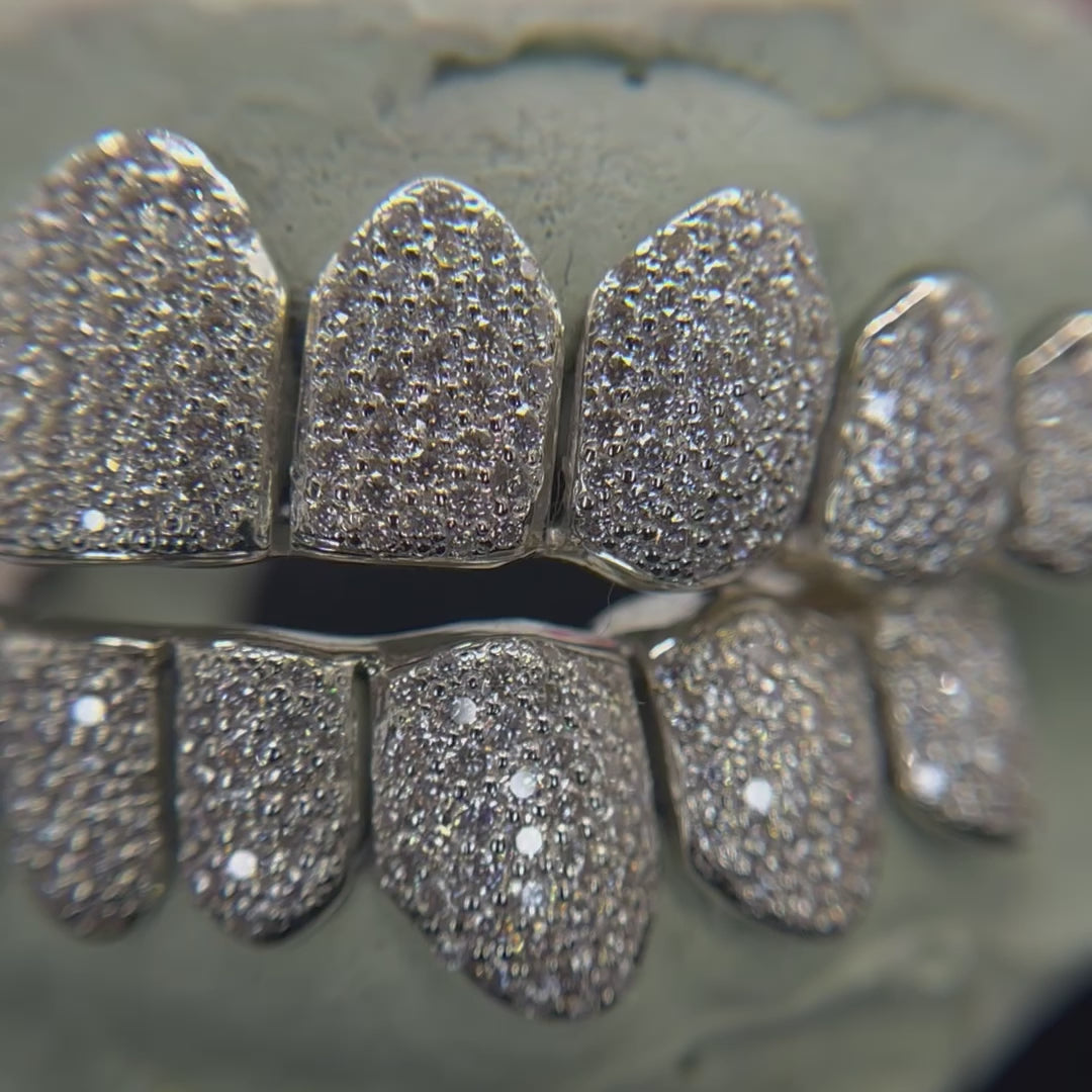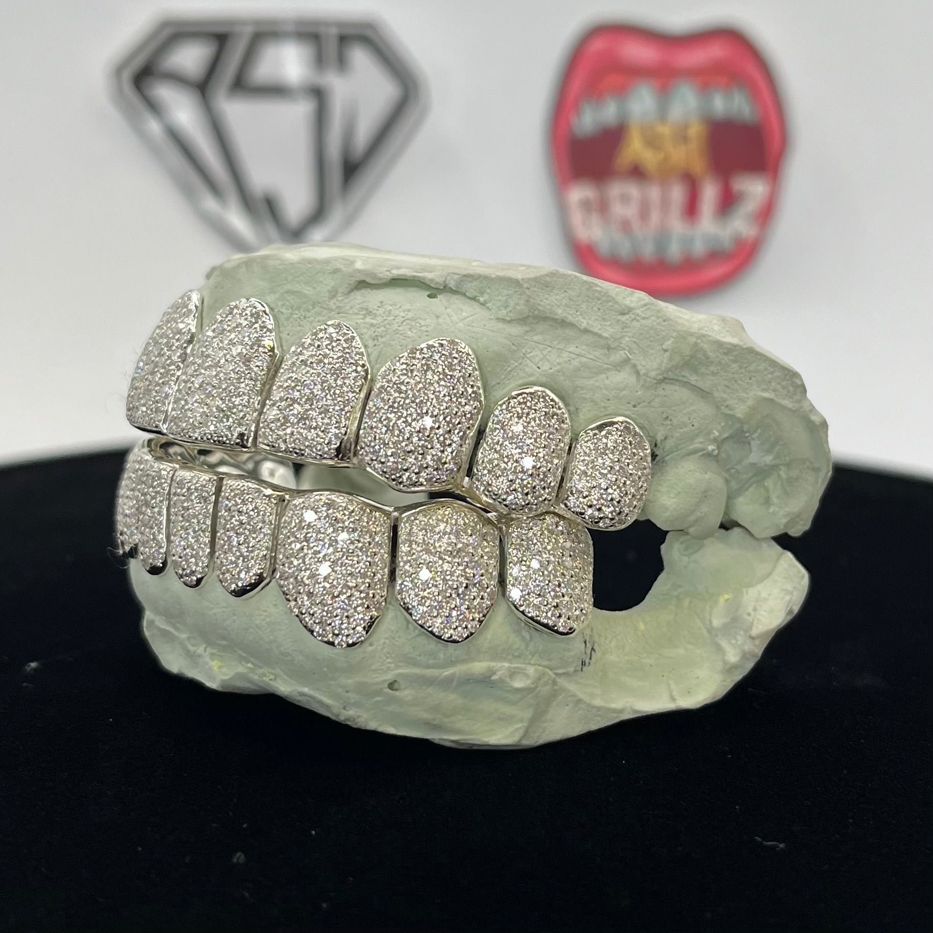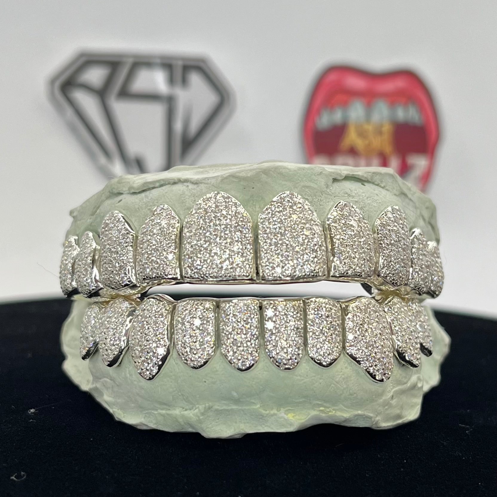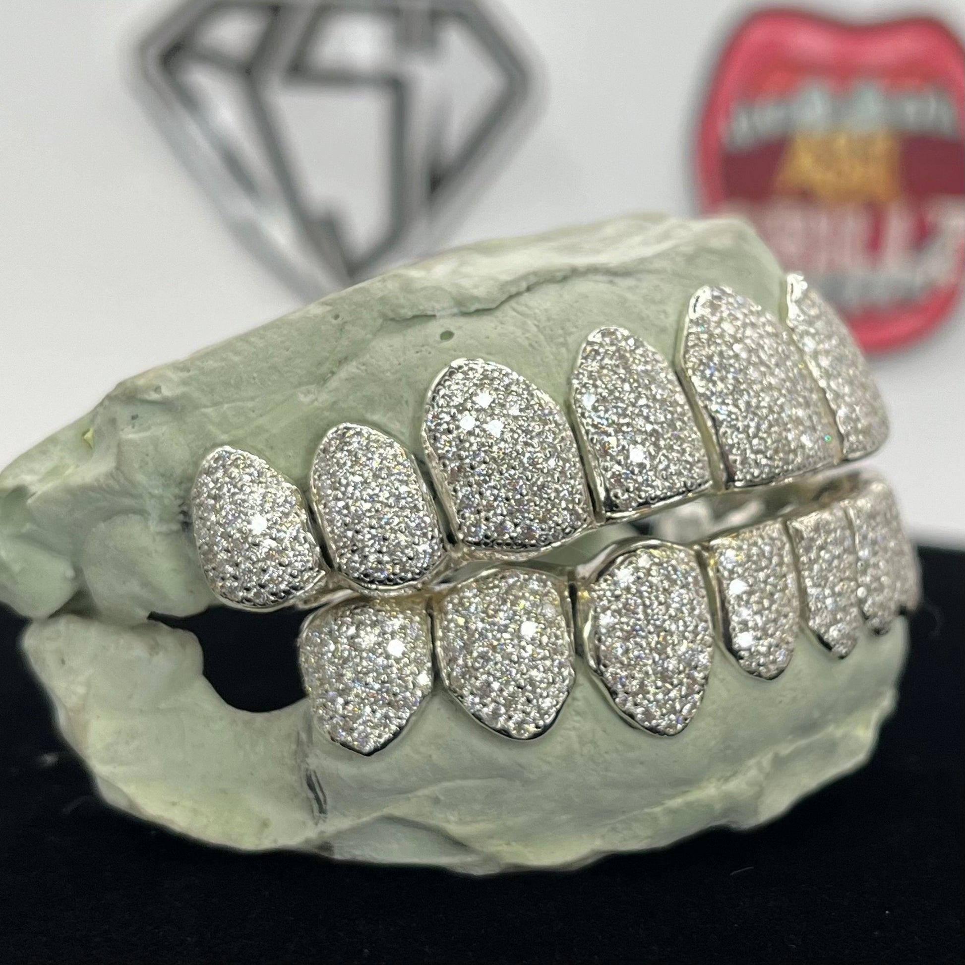 Maximize your shine with our 10/10 Honeycomb VVS Moissanites Grillz, perfect for those who want full coverage and ultimate bling. Featuring a flawless honeycomb setting, these grillz are crafted with diamond tester-approved VVS Moissanites to give you the brilliance of real diamonds. Customize your piece by choosing between sterling silver or any gold karat to suit your personal style. Designed for a perfect fit and maximum comfort, these grillz will have you standing out in every crowd with ten teeth of pure shine.