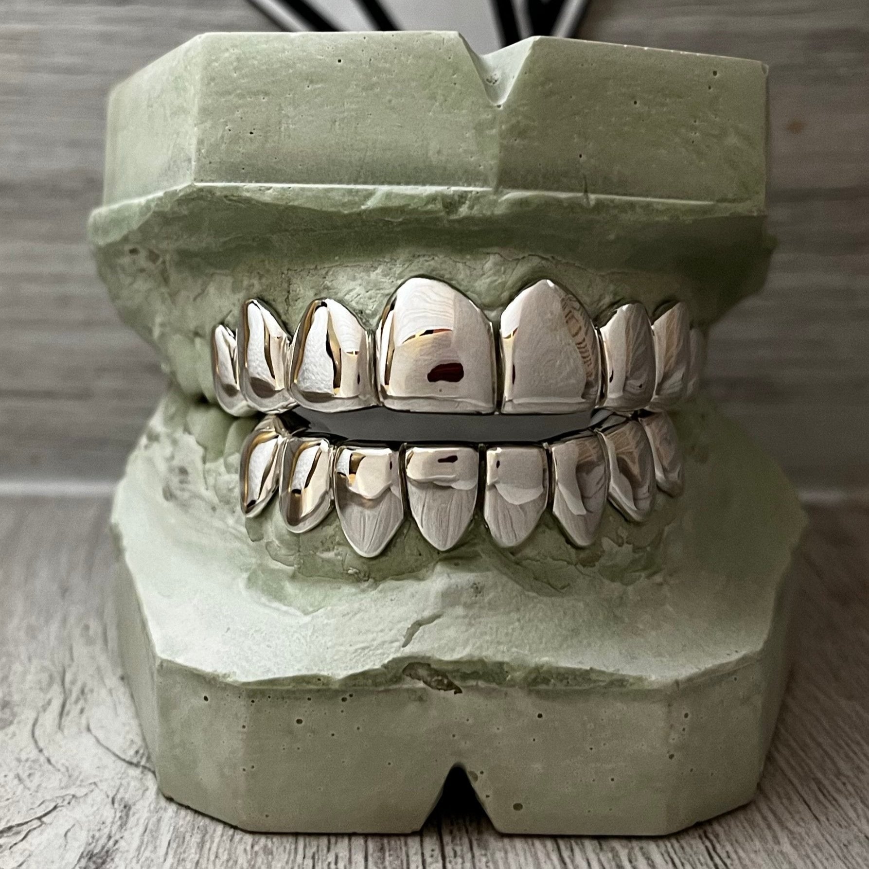 Perfect for anyone looking to showcase their individuality, our customizable grillz offer endless design possibilities. Enhance your silver grillz with VVS Moissanites, giving that authentic "iced" look without the lab-grown label. Each piece is meticulously crafted to ensure a secure, custom fit and maximum comfort.
