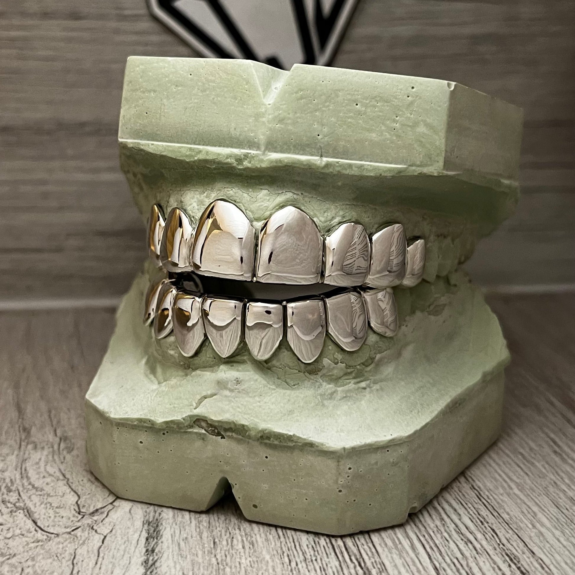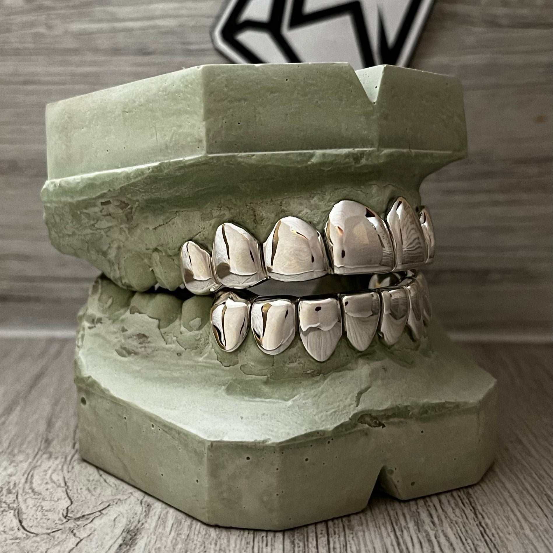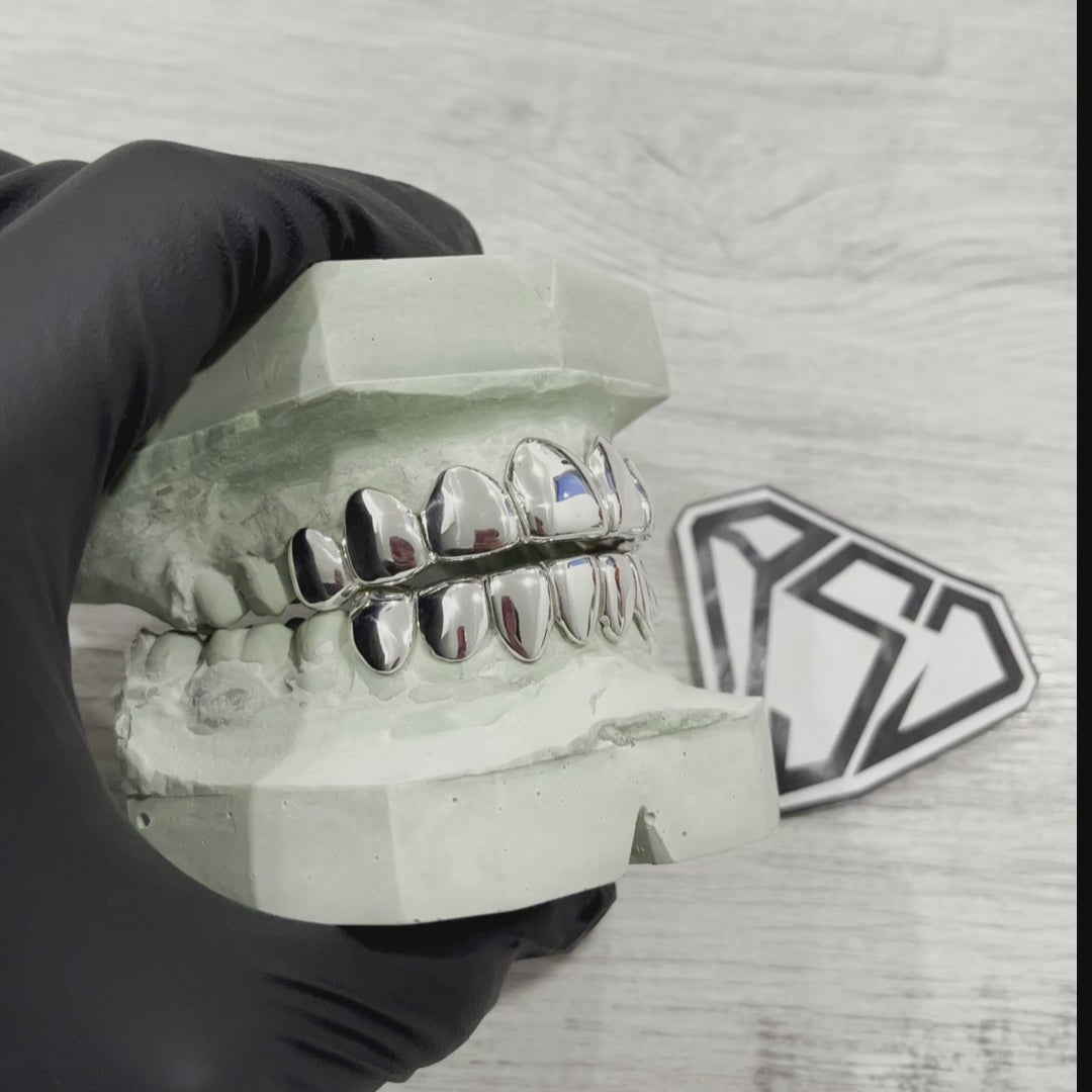 Solid Silver Custom Grillz - Fully Customizable Grillz with VVS Moissanites Available